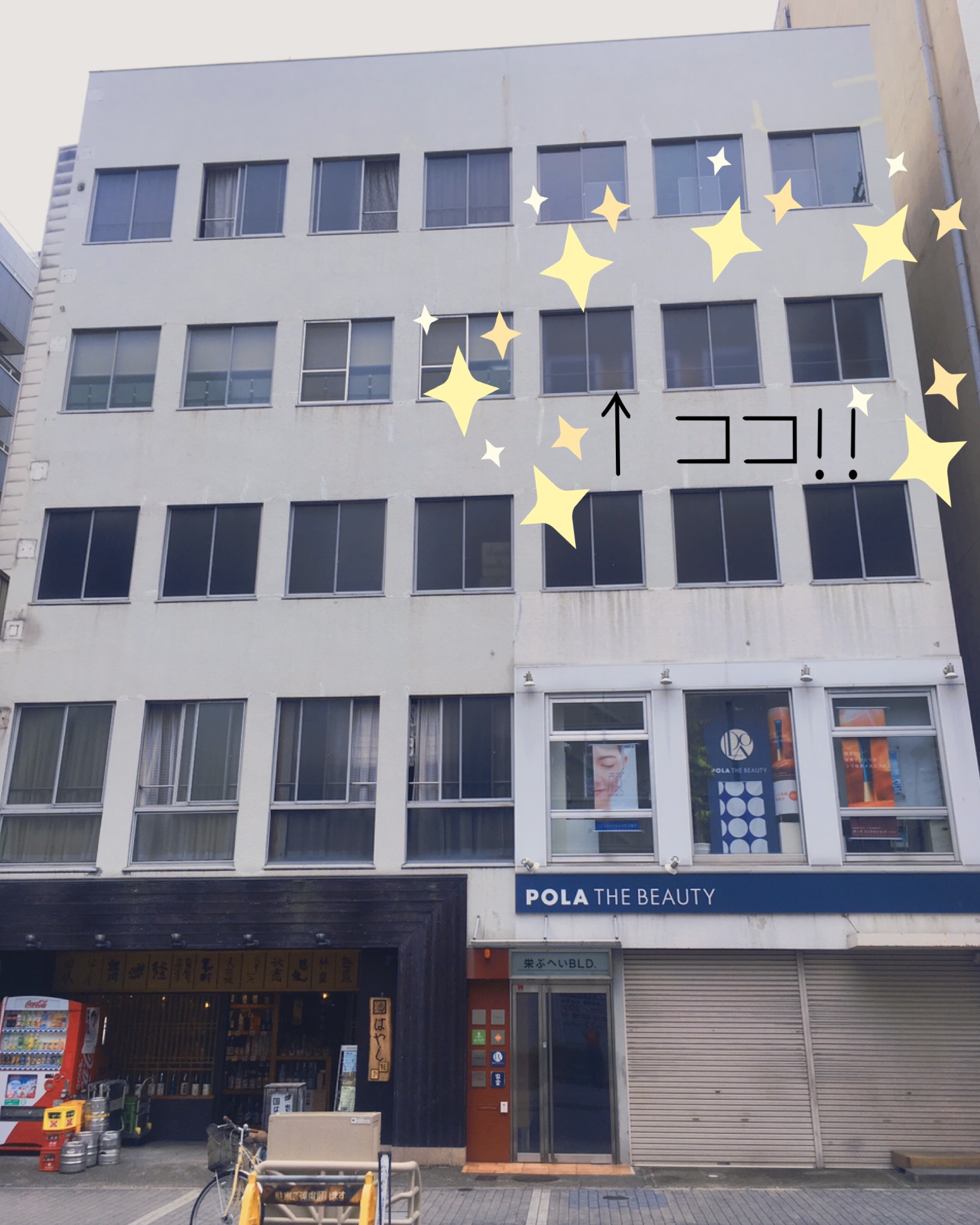 一階には酒屋さん、二階にはPOLAがあります!
