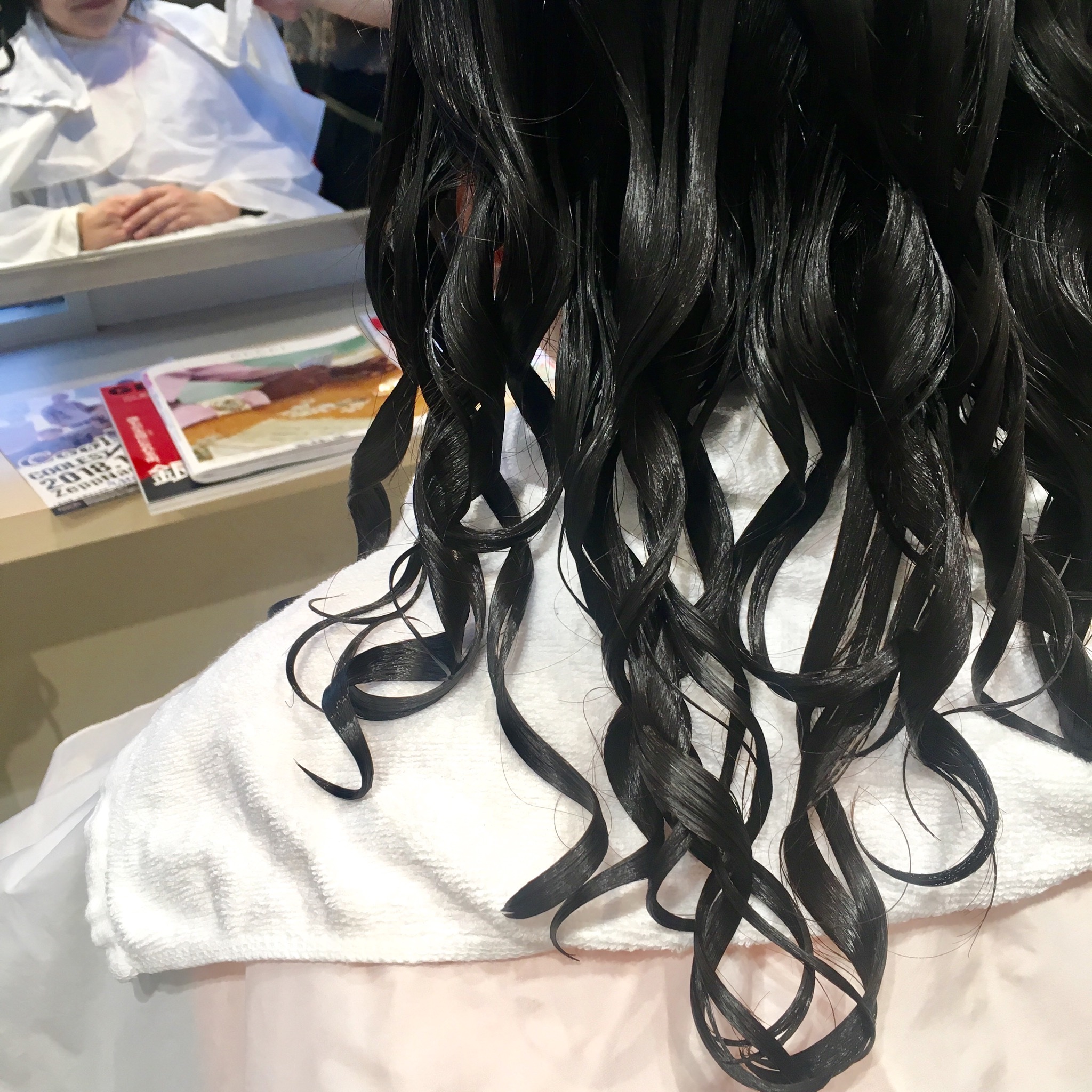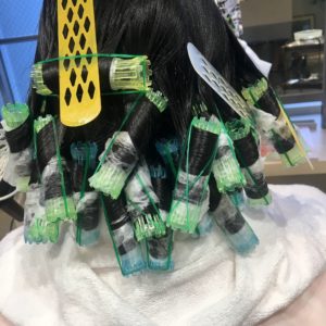 簡単にいうと…ロッドを巻いて、1液で髪の結合を切って、2液で巻かれた形にくっつけてウェーブをつくります^ ^