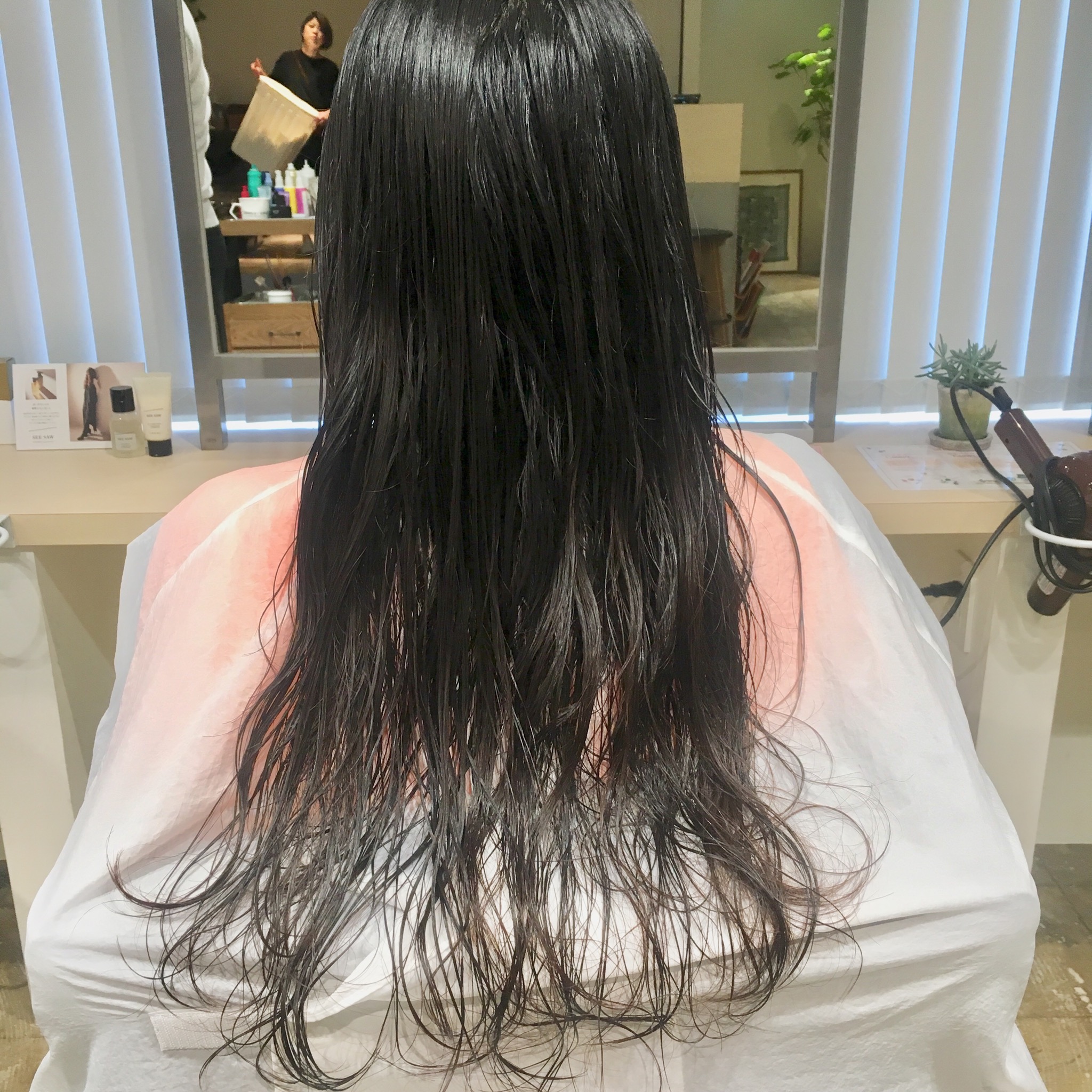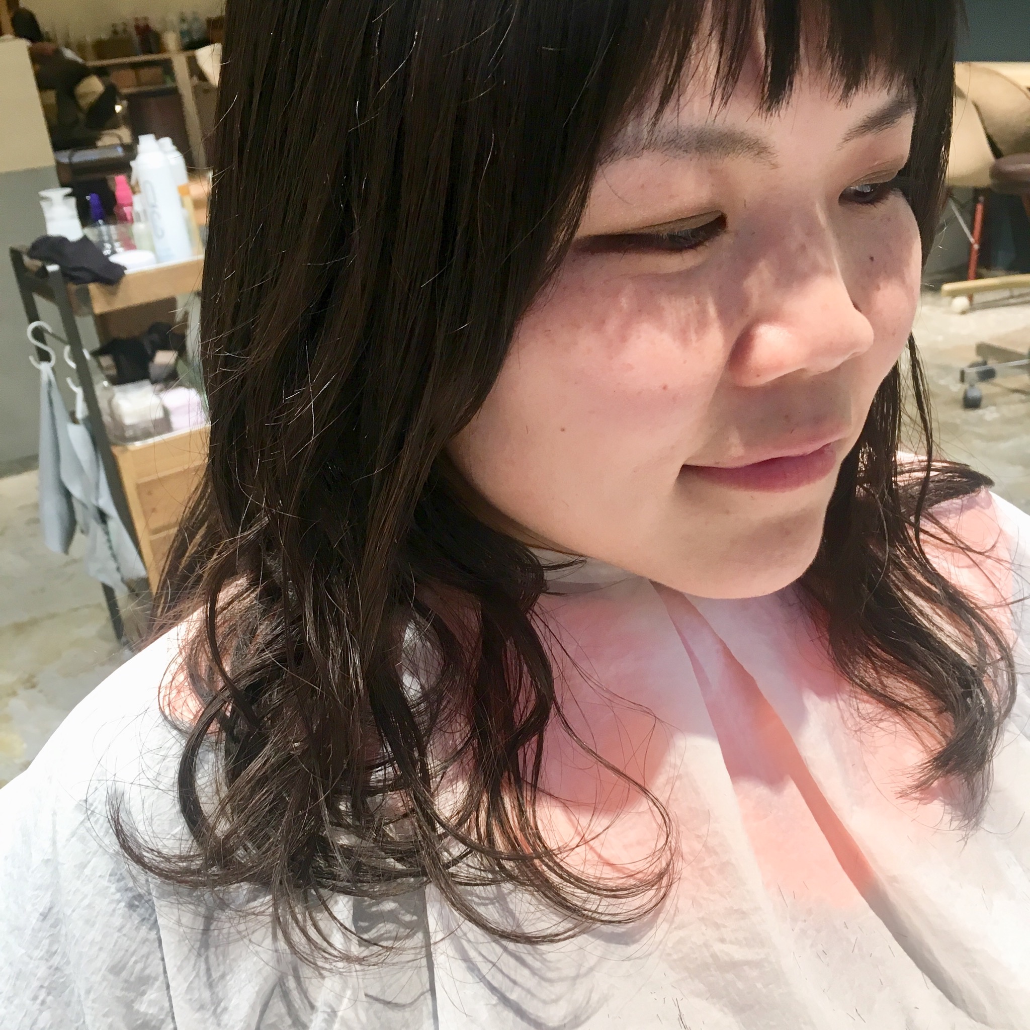 今回のお客様は、ロングヘアをミディアムパーマヘアにチェンジです!